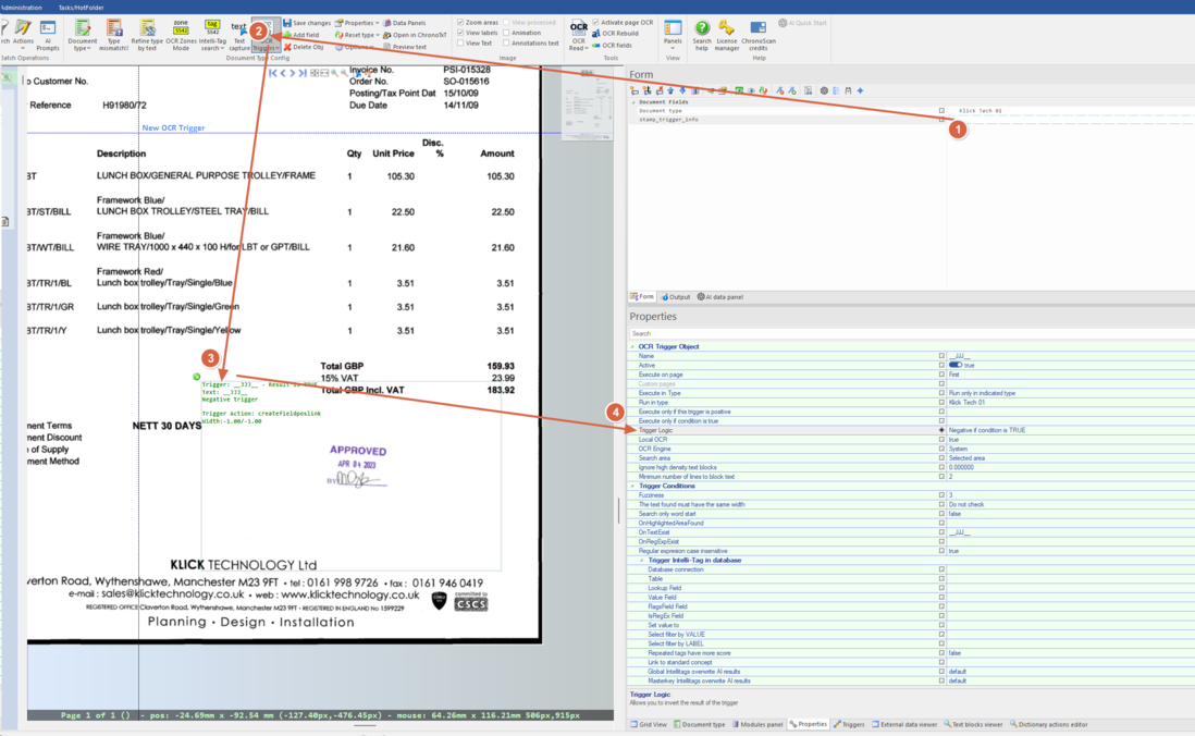 2. Create a trigger on the target field (e.g., stamp_trigger_info). Define a trigger area big enough to cover the expected stamp.