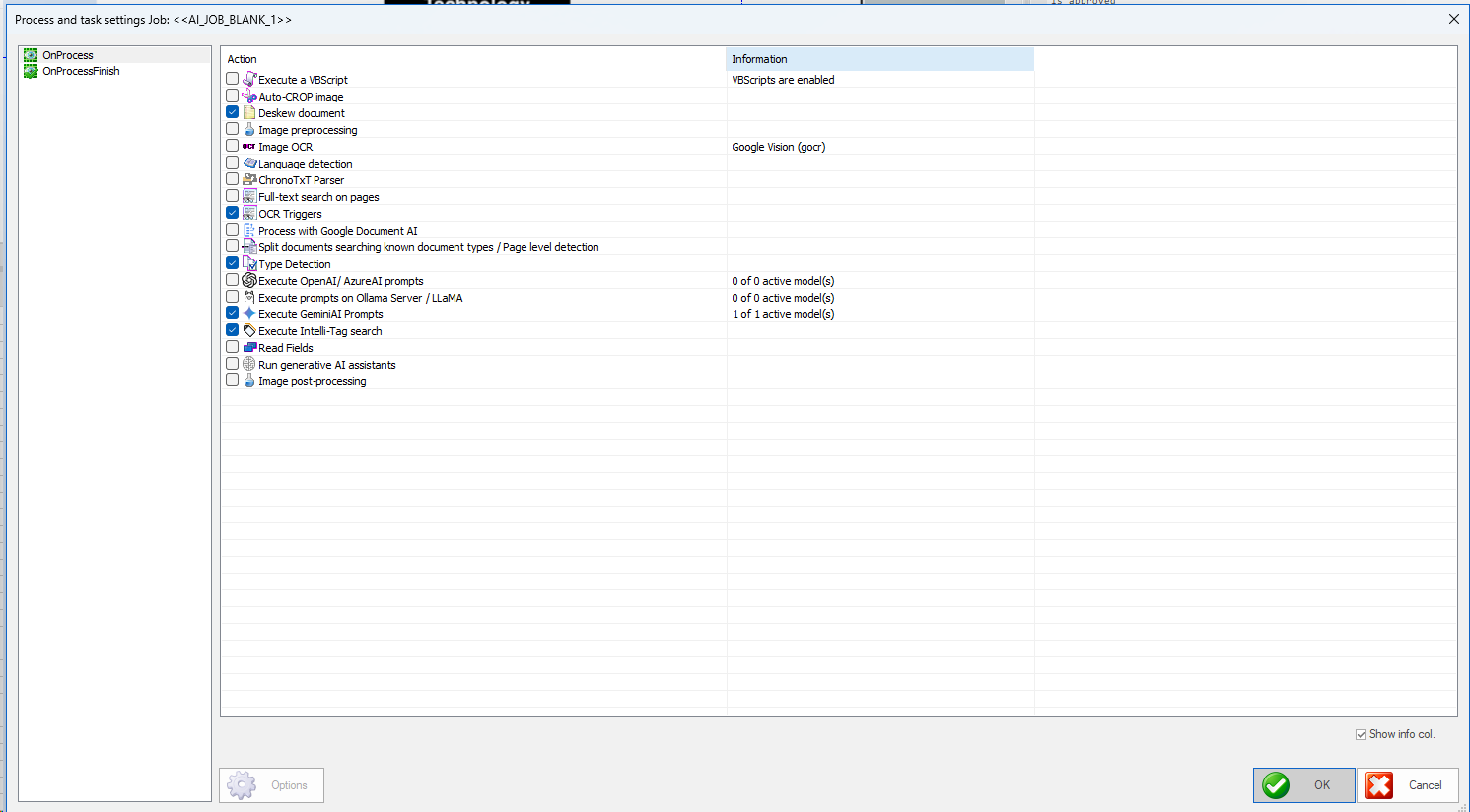 7. Ensure required processes are enabled: ✅ OCR triggers, ✅ Type detection, ✅ Execute GeminiAI (or chosen AI) prompts.