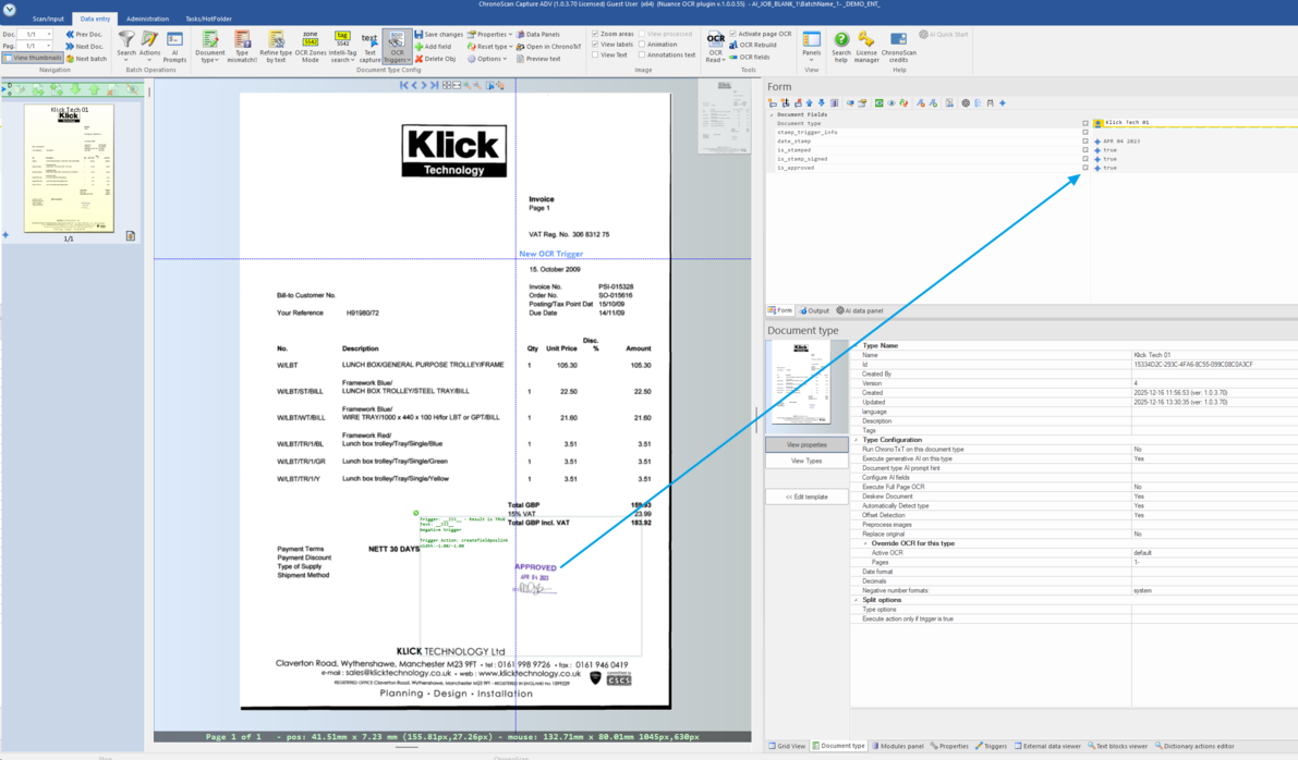 8. Process the document. The extracted values will populate the job form.