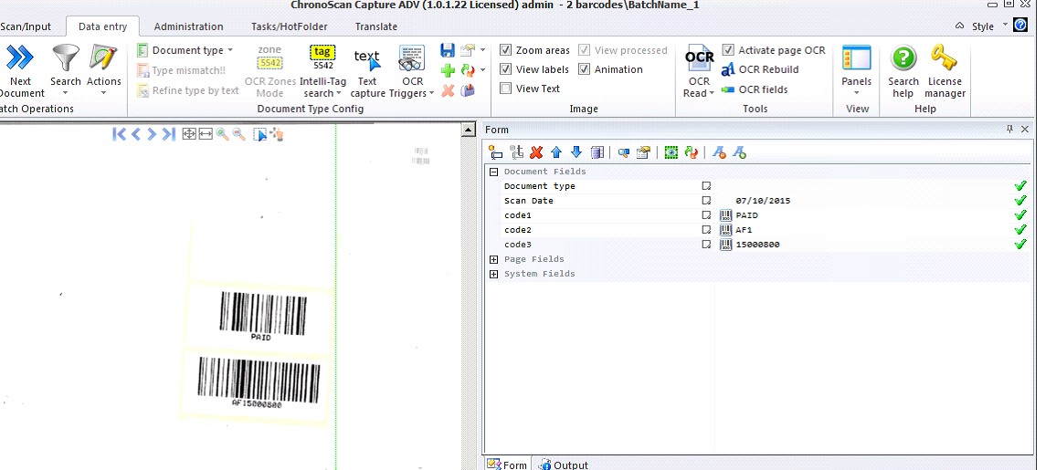 Every new document imported into ChronoScan will now have the barcodes extracted as shown.
