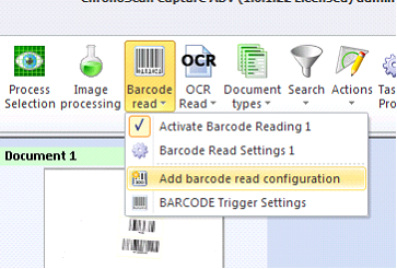 ChronoScan defaults to one Barcode Reading. First we need to add a new barcode configuration and activate both of them: