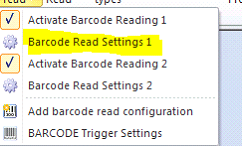 The Barcode Read Menu should look like this when the two Barcode Readings are enabled.