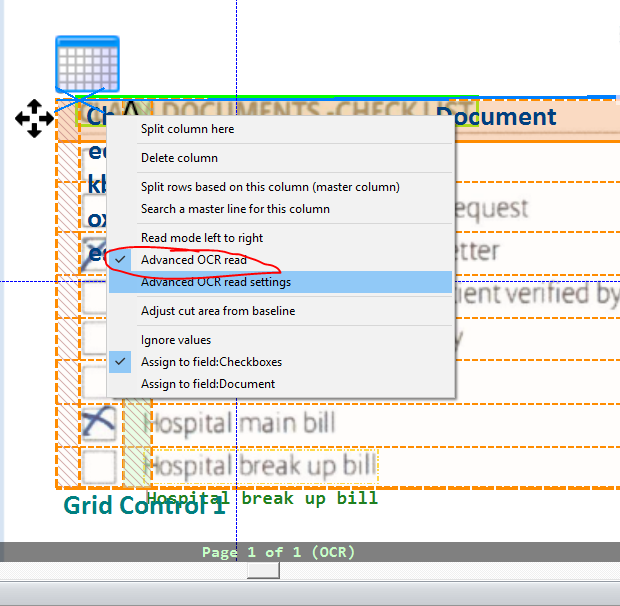 Finally, Advanced OCR Reading must be enabled for the column capturing the checkboxes and the Mark Detection Engine should be selected,