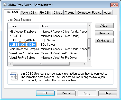 Dim SQLString Set MyDB = CreateObject("ADODB.Connection") MyDB.Open "ULISES_JOSE_DEV"