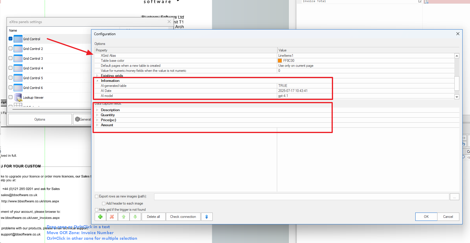 When the process is complete, a new dialog will appear displaying the extracted information along with configuration options, as explained below: