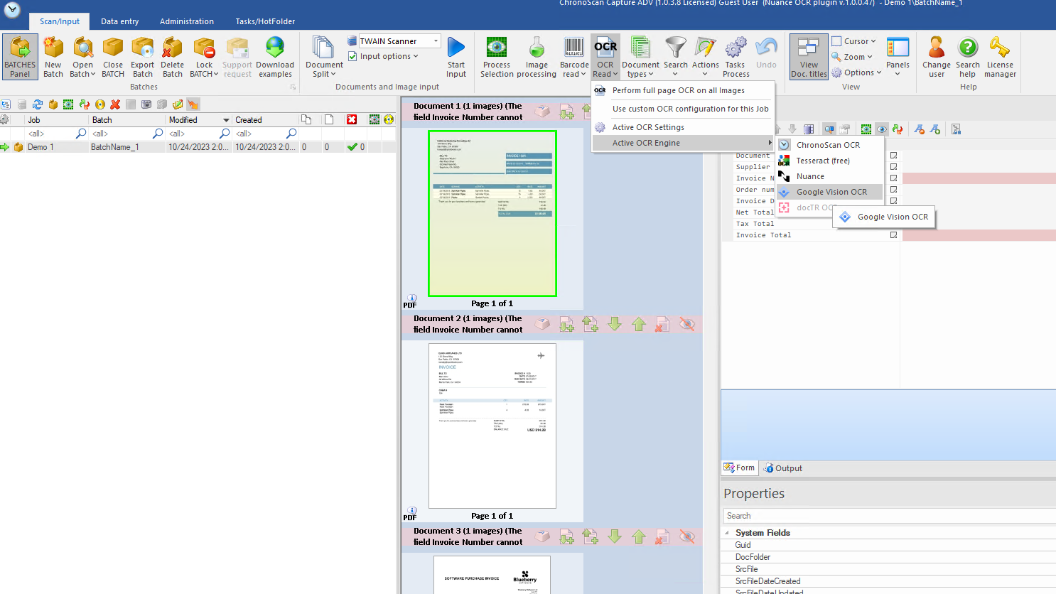 *Google document AI does not required a previous OCR done so you can disable the OCR made by ChronoScan