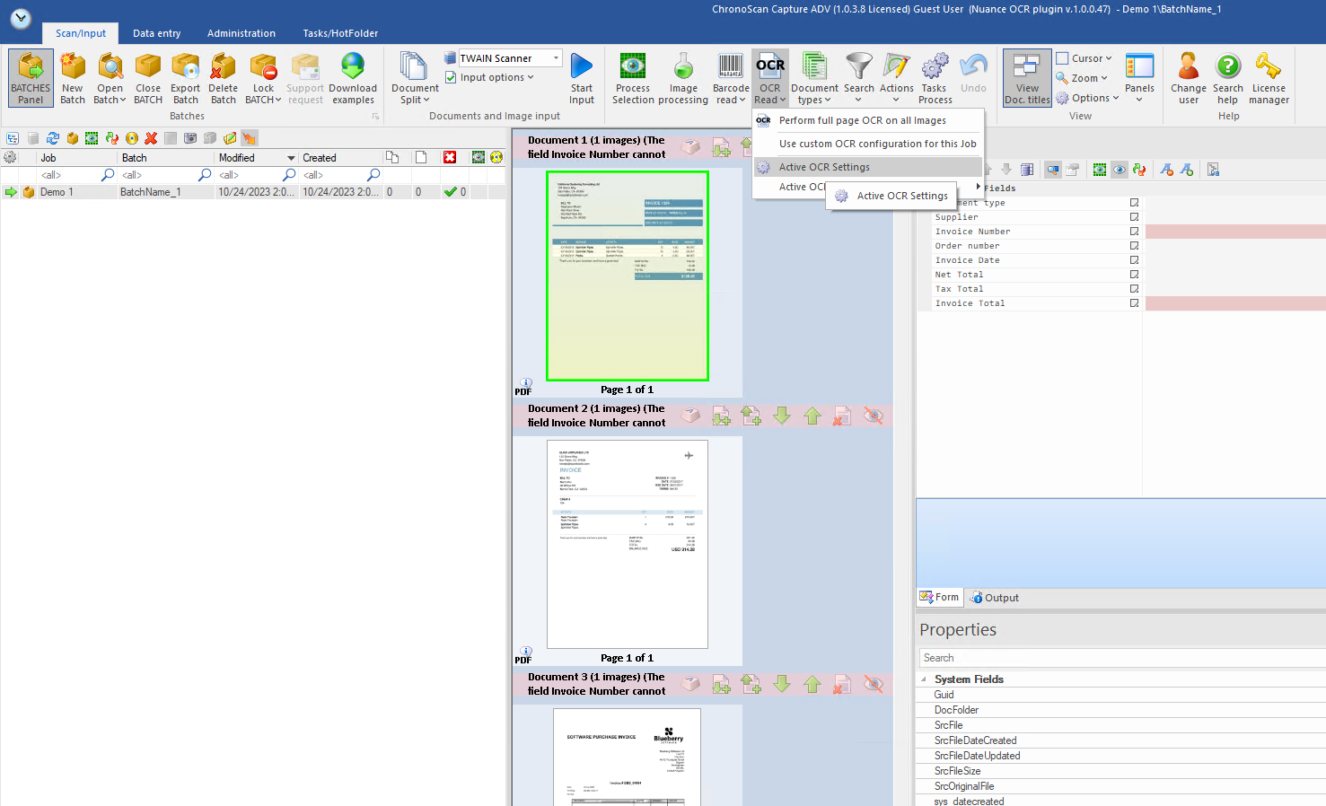 After that, open the "OCR Read" drop down again and click on the "Active OCR settings" option