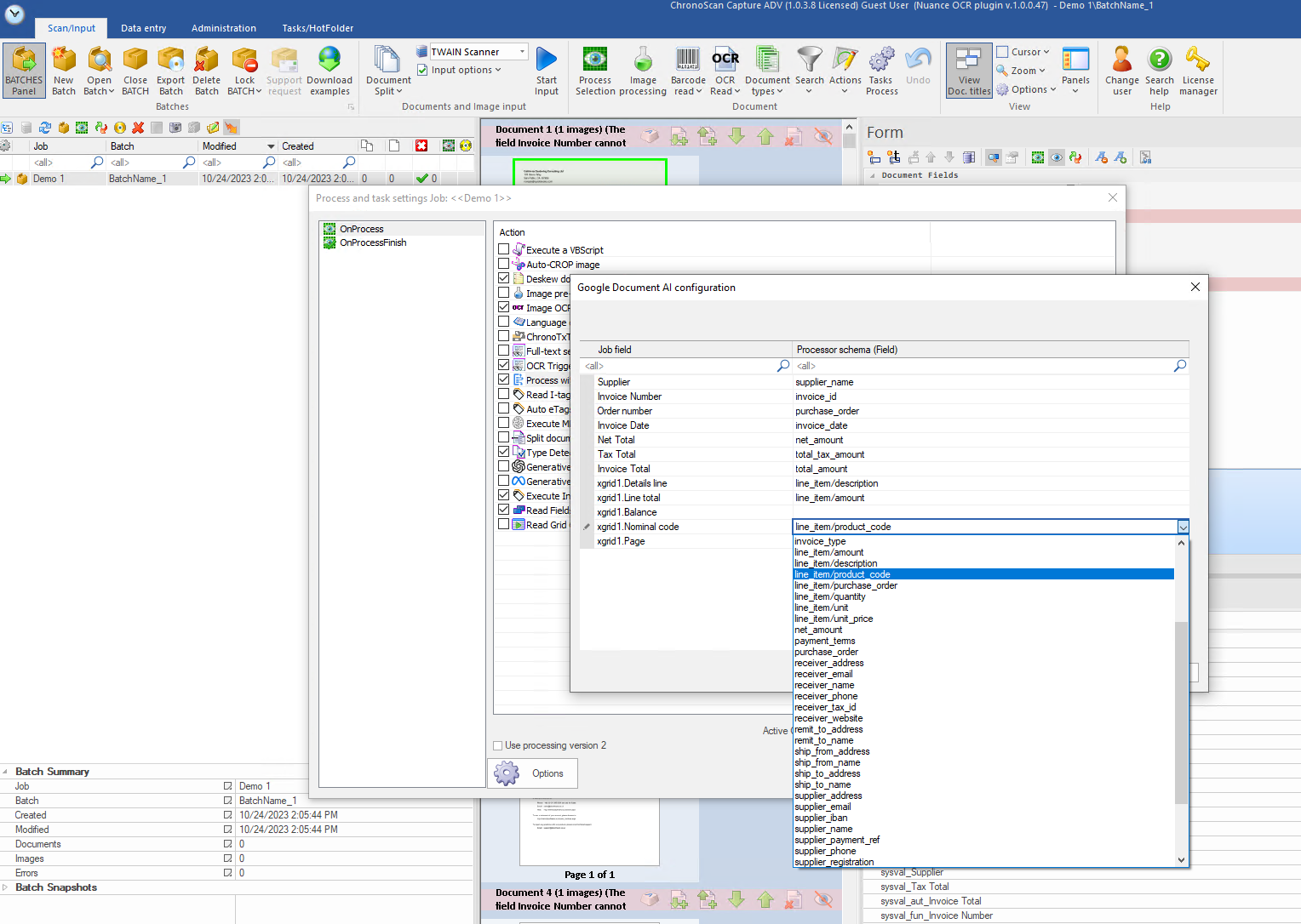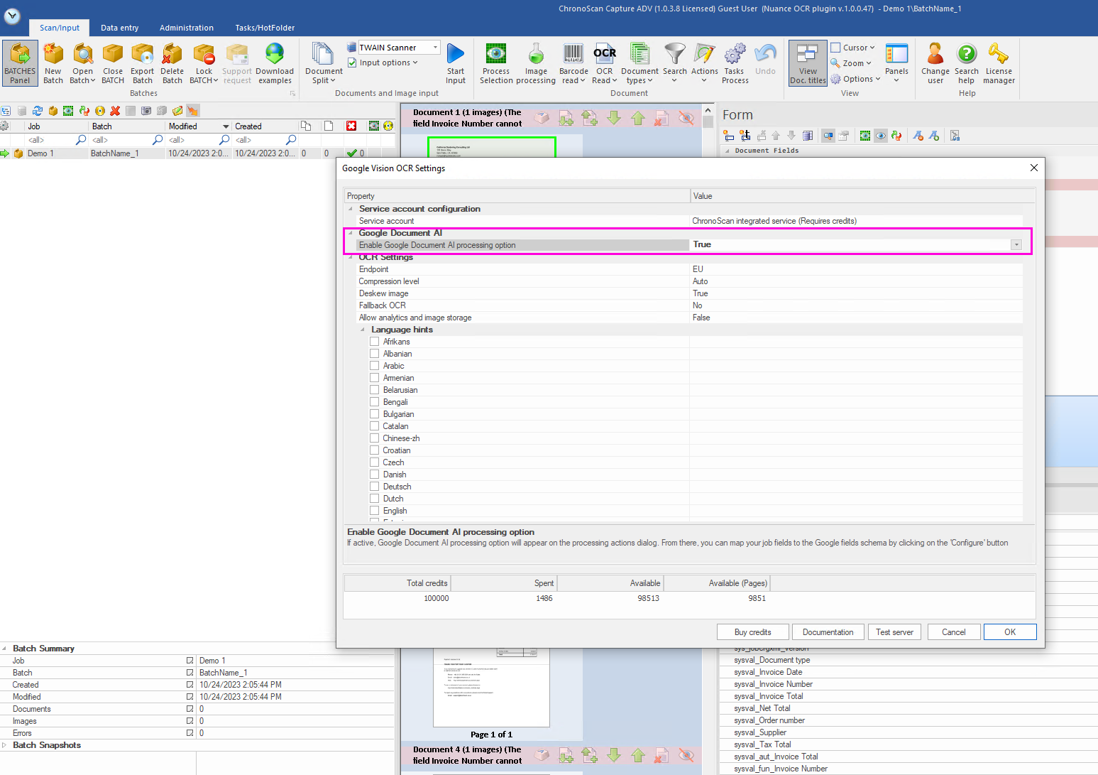 Since version: 1.0.3.1 ChronoScan is integrated to the Google Cloud Service Document AI for invoice processing.
