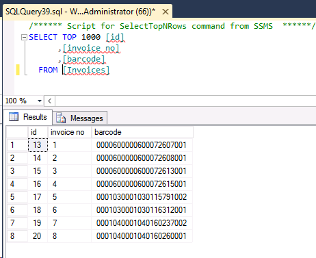 Results in SqlServer