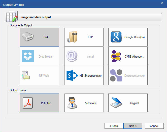 7 - Lastly, define which kind of file format and file destination you want for your documents, only the basic options will present here, more options can be setup later:
