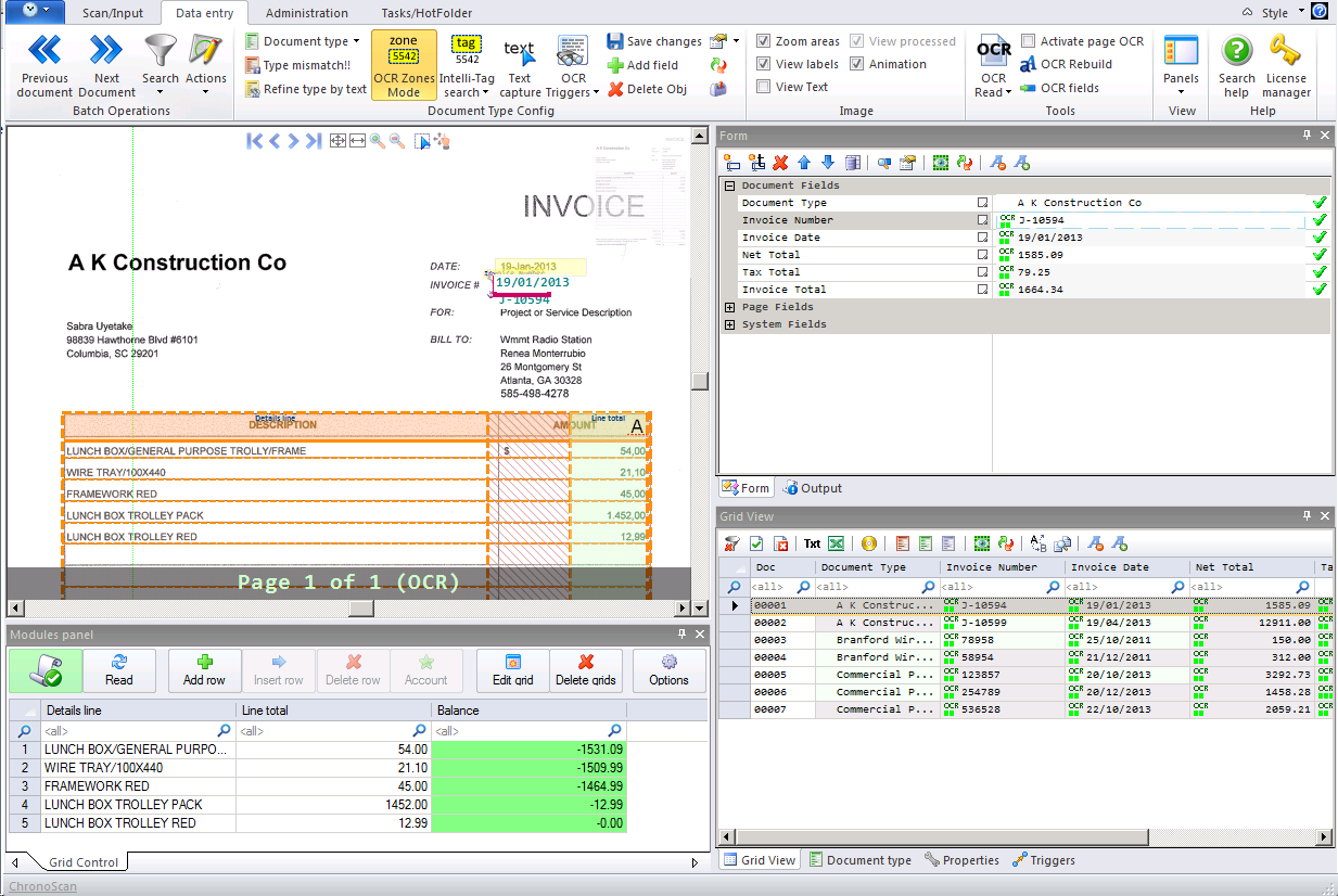 We have an invoice job with several capture fields and a detail lines grid capture: