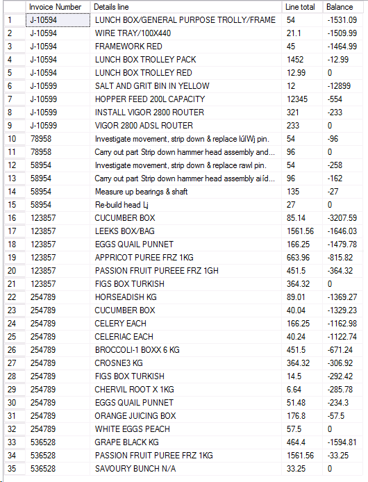 This is the result for the second configuration "ODBC Export INVOICE DETAIL LINES"
