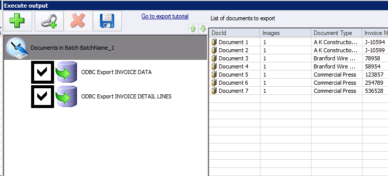 This is the result for the first configuration "ODBC Export INVOICE DATA"