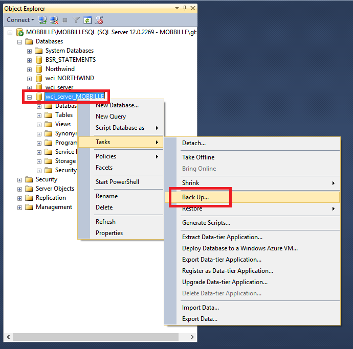 To back the Enterprise Database you will need to launch your SQLServer Management Studio.