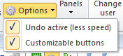 This menu has the option to disable the Undo feature, it makes the program run faster. It is also possible to turn on the Customizable Buttons.