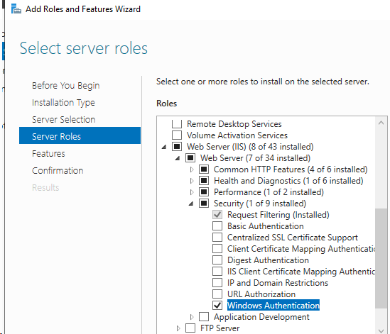 If Windows Authentication is not present here, it is necessary to install it on Windows
