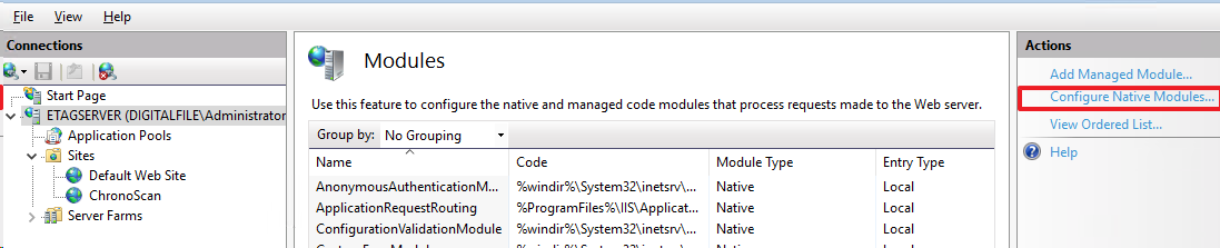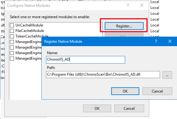 Click on Configure Native Modules and enable the existing ChronoIIS_AD module