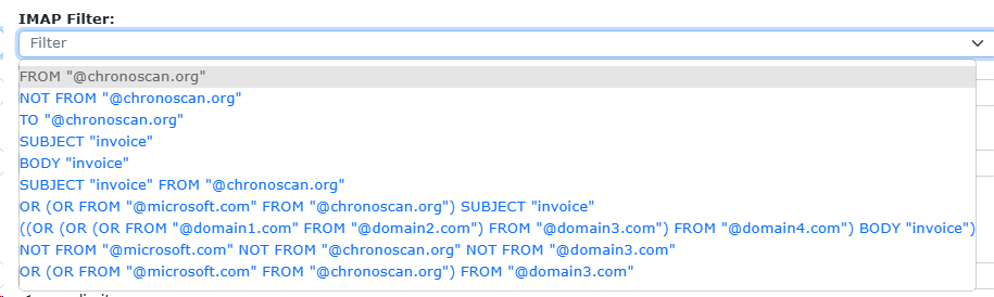 When using Entities, IMAP hotfolder batches can be set to a specific entity from this menu. Together with the IMAP Folder options and built-in filters on the email server, several IMAP hotfolder configurations can be created to accommodate any kind of Entity configuration.